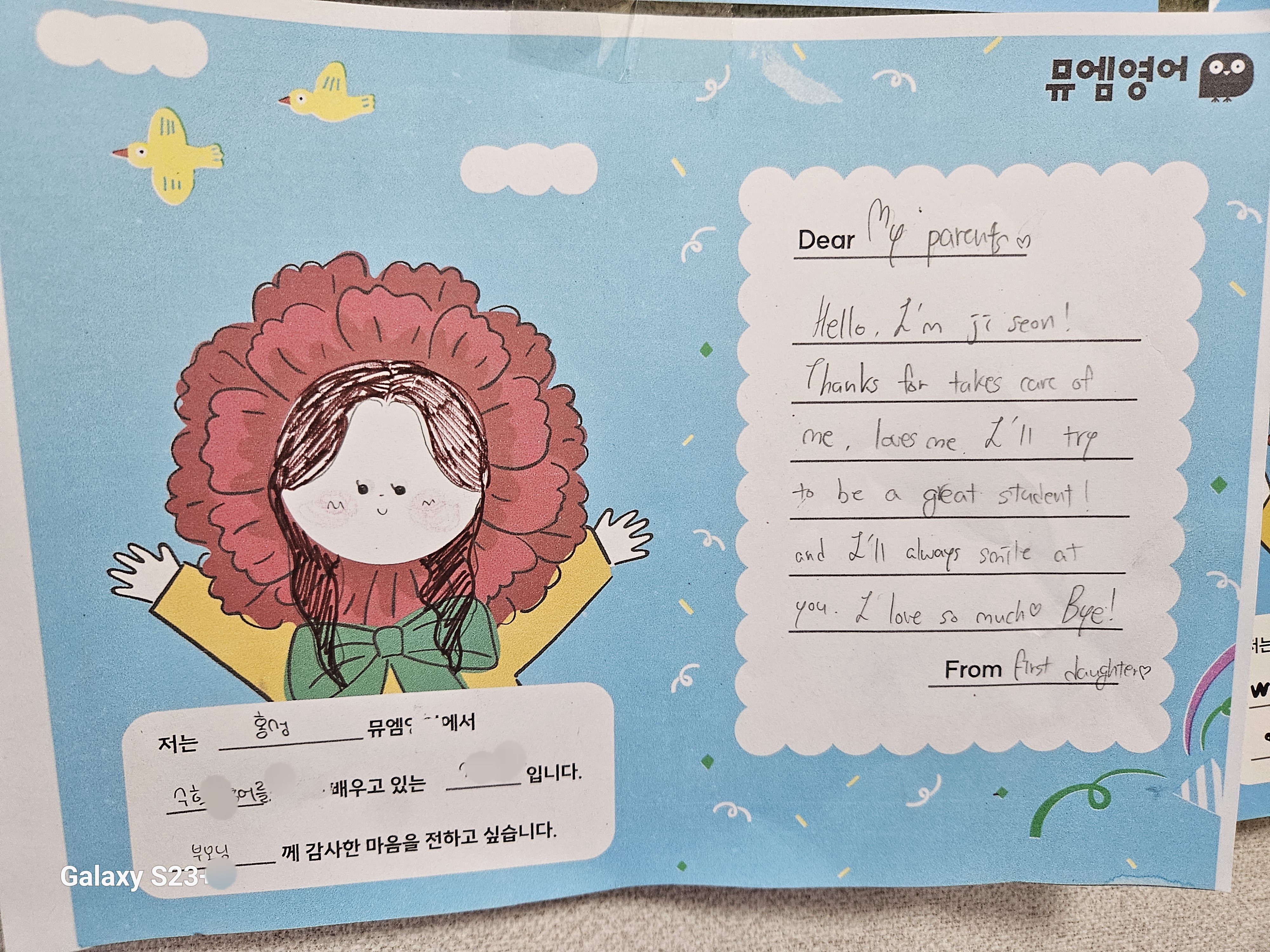 화곡동 뮤엠영어 일등급수학 학원 입니다. 화이트코스 파닉스 첫 권을 마무리 한 친구가 있었습니다. 다른 곳에서 영어를 배우다가 파닉스 맛집 뮤엠영어 소식을 듣고 옮긴 꼬마 아가씨 입니다. 유치원때...