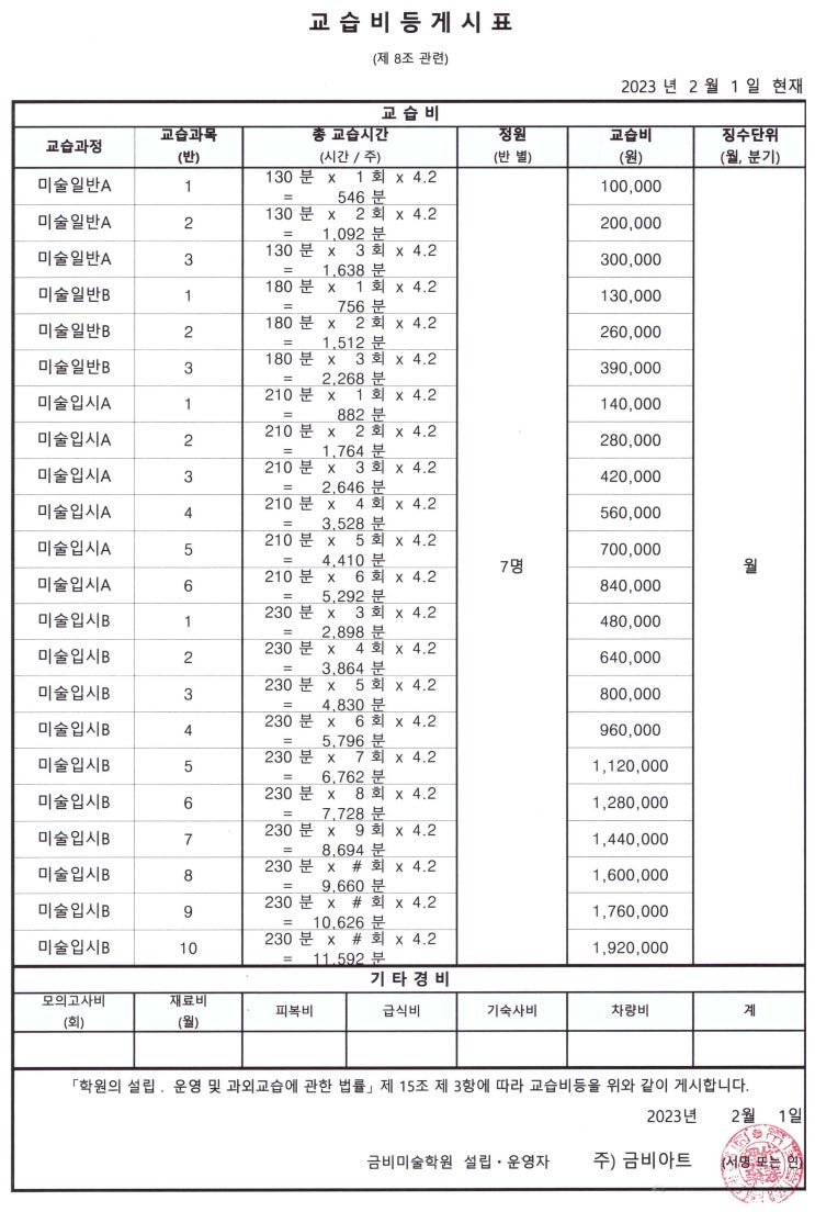 금비아트미술학원 상세정보