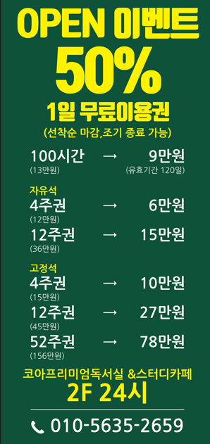 무거점코아프리미엄독서실 상세정보