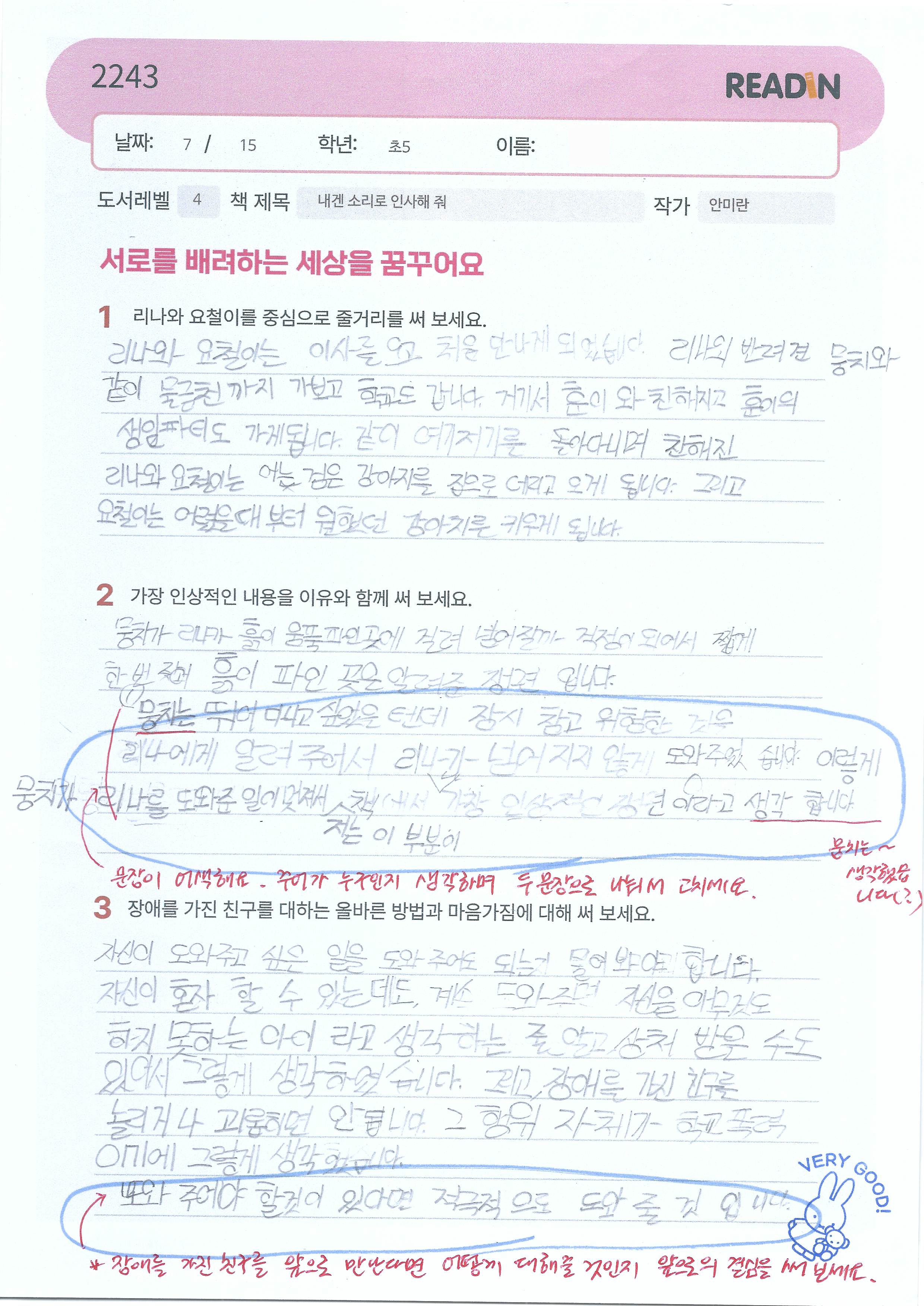 해주는 다정한 선생님까지, 모든 캐릭터가 밝고 사랑스러움이 느껴지는 책이었습니다. 짧은 분량에 매... 5층 #리드인 #독서논술 #조나단리드인 #리드인소안초점 #소안초 #초등독서 #논술학원 #일신초 #소사초...