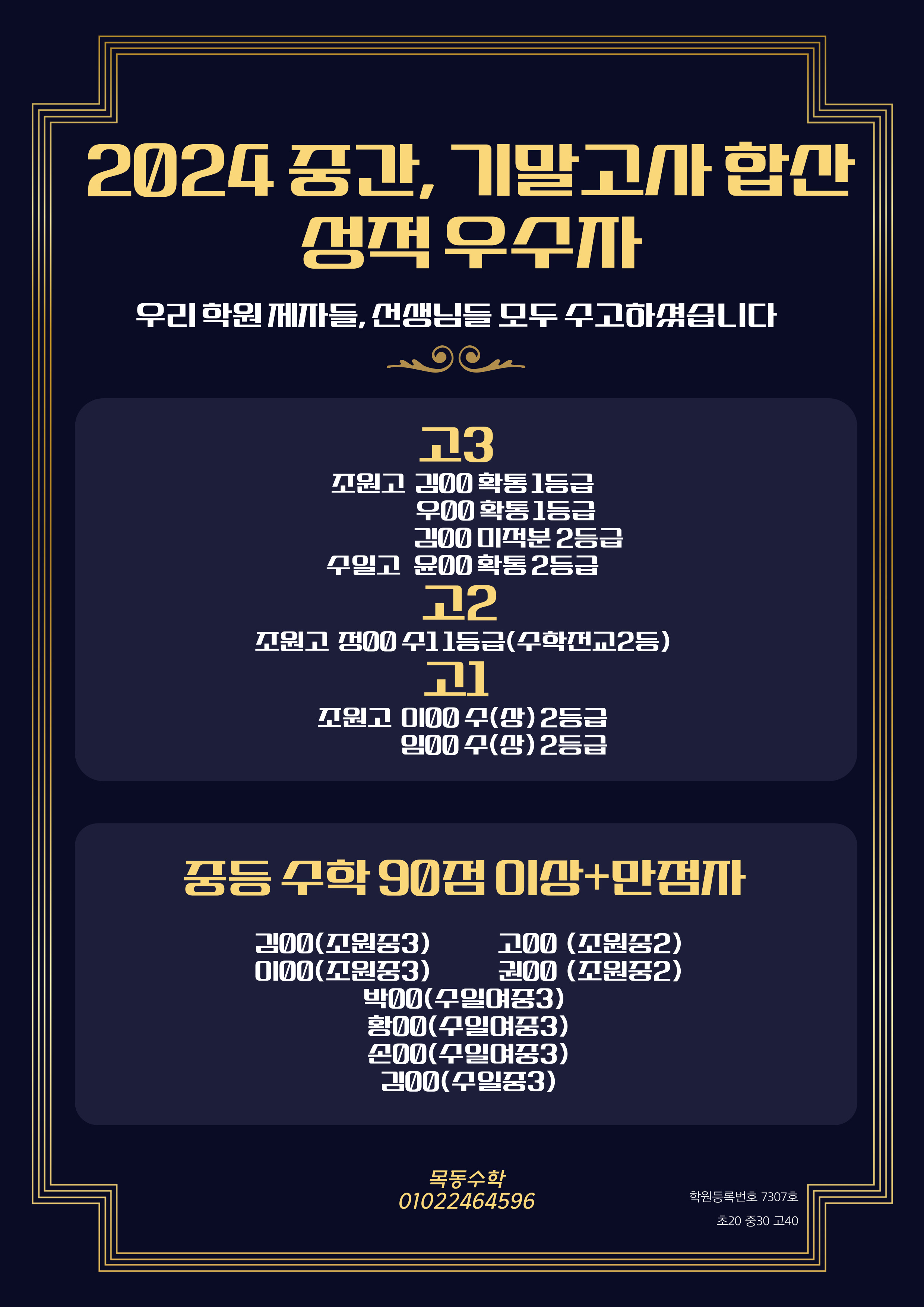 제대로된 수학교육 받아 보셔야죠^^ 목동에서 유명한 고등부 전문학원 합격자명단만 봐도 느껴 지지 않습니까? ☎ 044-867-1997(세종 목동수학 나성학원) 학원 등록번호/교습비 반드시 표시 (학원법 15조) 1....