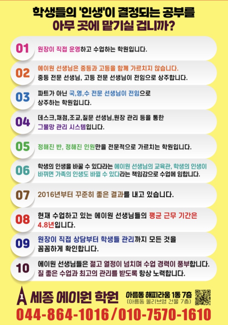 세종 인서울 입시전문관 세종에이원 from 2016 · 2025.06.05