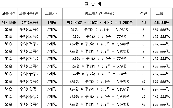 광명 엠큐브학원의 수학 수업은 개별수업방식이 원칙입니다. 그러나, 중등과 고등의 경우 학생들이... 연산교재 + 학원프로그램 중등교과 및 고등선행 - 개별수업반 한반 정원 6명 중등1학년은 과도기이므로...
