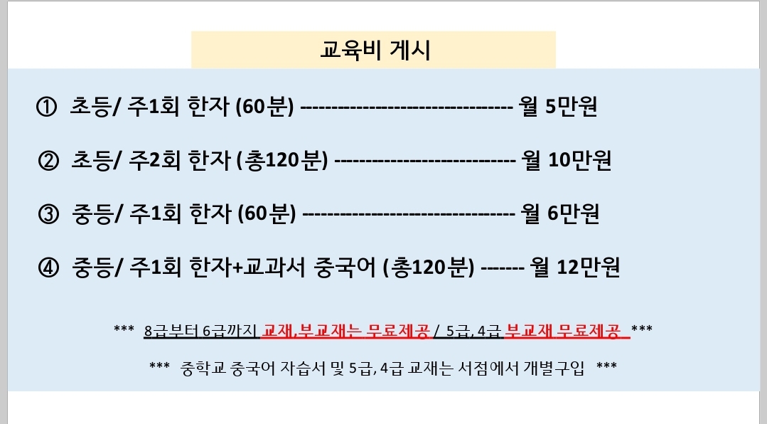제가 공부방을 정리하고 한자교습소를 열게 되었습니다. 중국어 수업은 이제 안하구요.. 한자만... "심심한 사과말씀...",, 논란이 됐던거 아시죠^^ 초등친구들은 <기본 급수한자에 교과서 어휘한자> 같이...