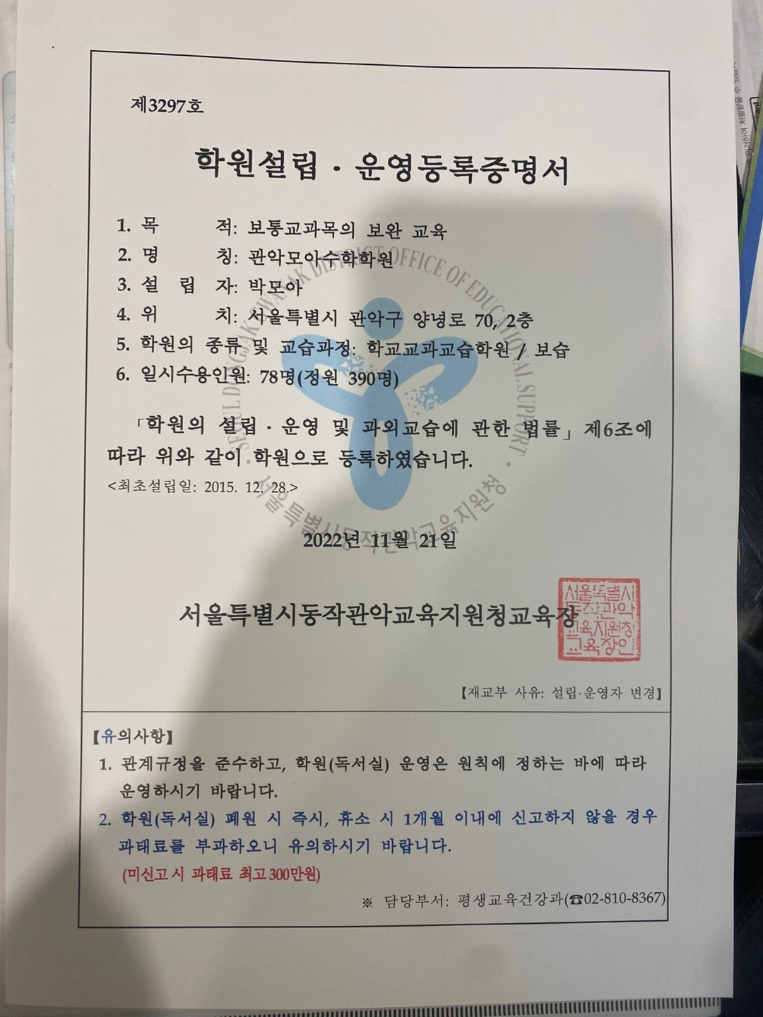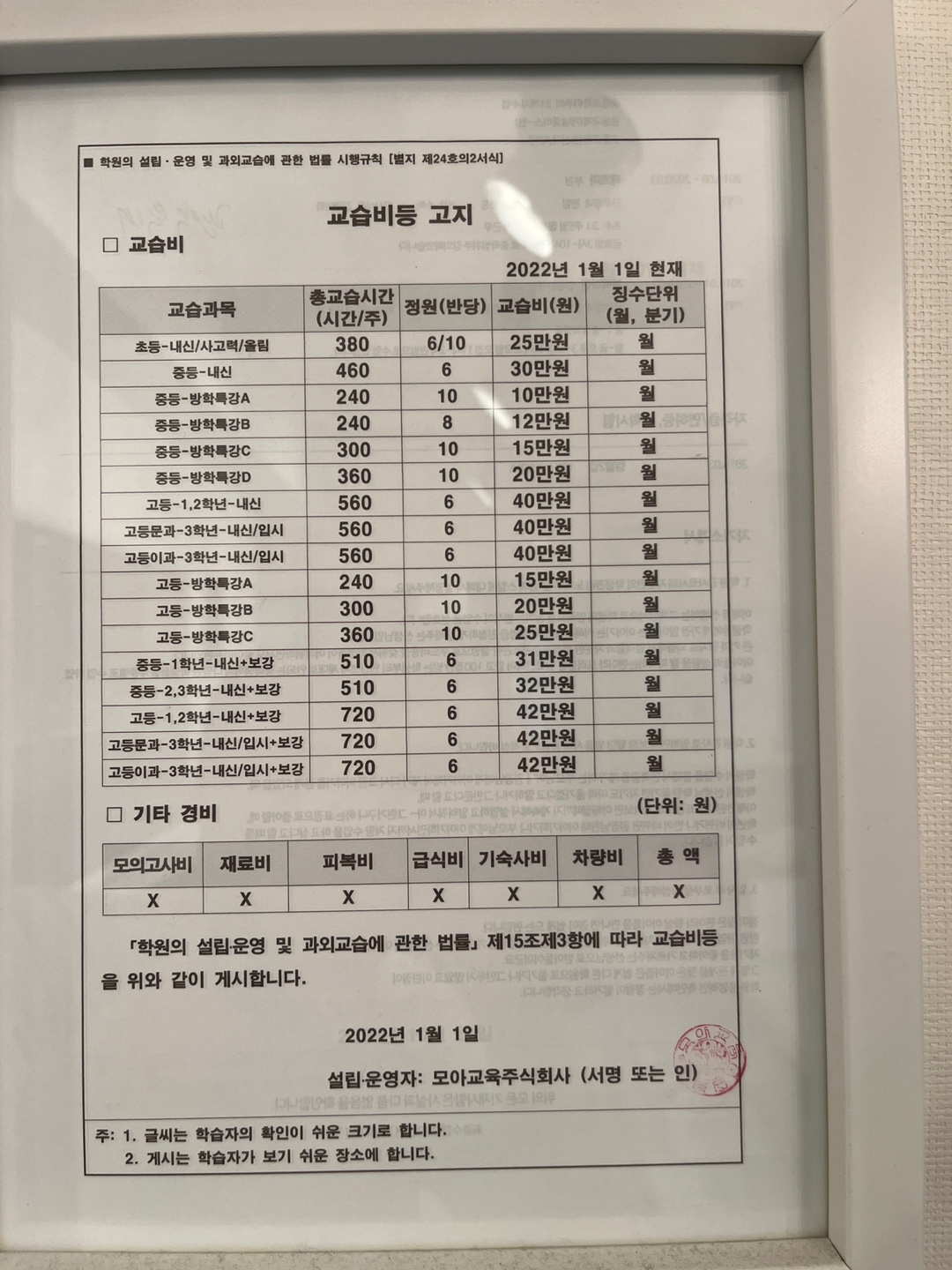 관악모아수학학원 상세정보
