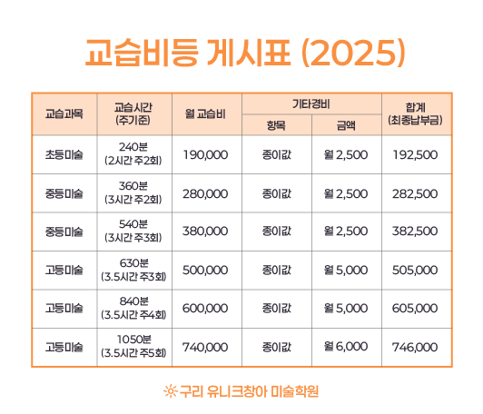 [50%의 장학금 지급] 구리 남양주 미술학원 유니크창아12월...