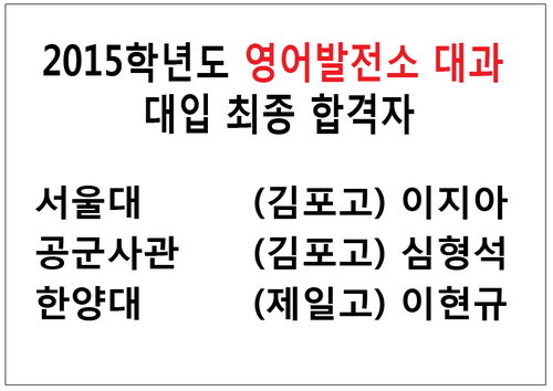 김포 어학원 이후 특목고 준비 학원 찾는다면 영어발전소 대과 첫째 수강중인 학부모님들 요청에 의해 초등 5,6 학년 <중등예비 신규반> 모집중입니다. 목표가 높고 방식이 다르고, 결과의 차이를...