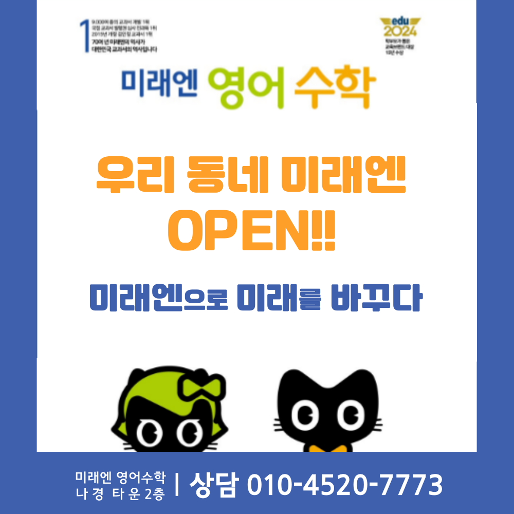 이매동 영어학원 추천! 코코스학원에서 초·중·고 맞춤 영어 수업 시작하세요 초등부터 고등까지, 1:1 맞춤 영어 관리! 내신, 수행평가, 단어·영작·듣기까지 전 영역 철저 대비! ✅ 초등부 – 미래엔 교재 기반...