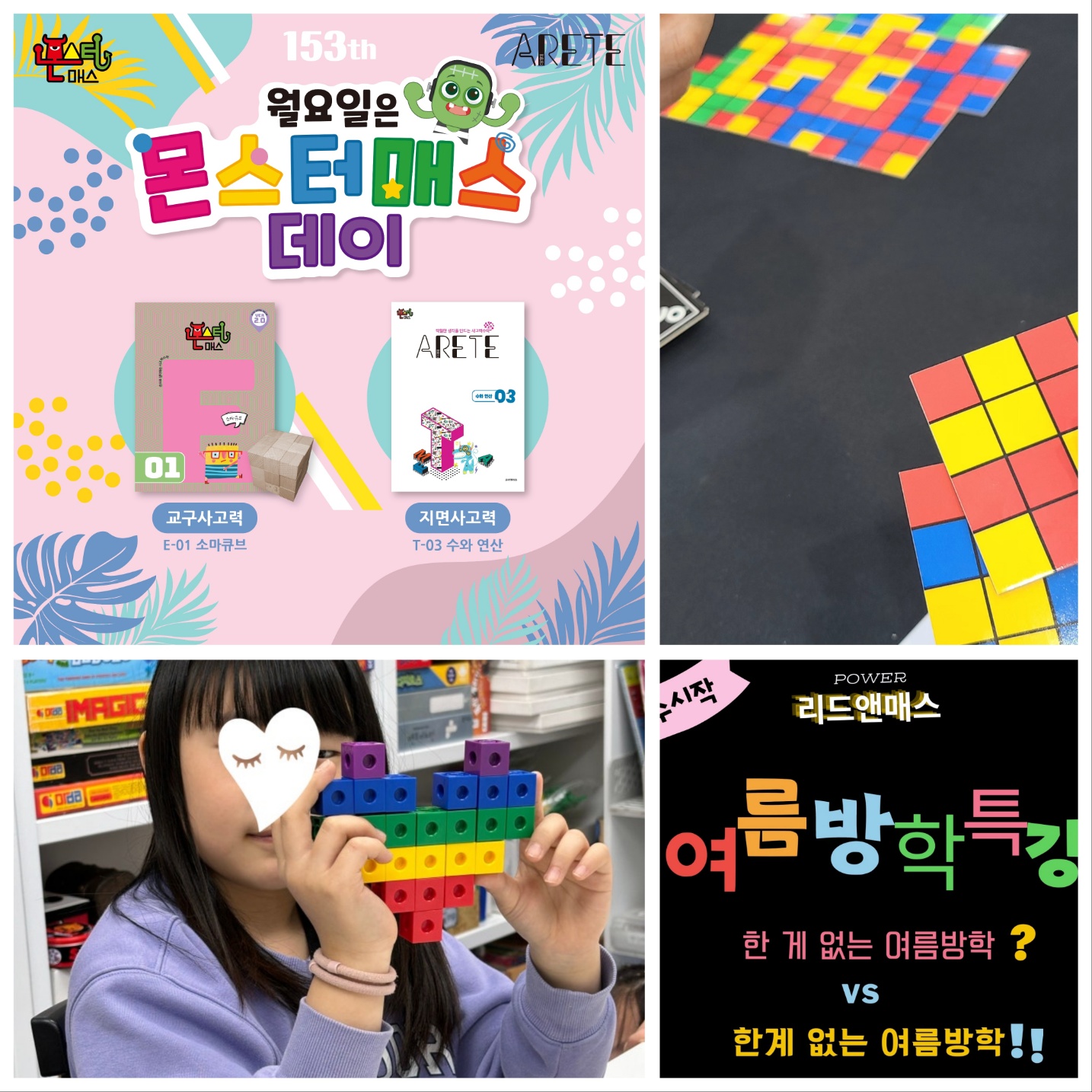 우리아이 첫 수학학원! 몬스터매스! 자신있게 소개합니다 즐거운 학습 환경: 유아한글 공부방/학원은... 문해력,사고력 향상: 다양한 리드인그림책 활동과 논술 수업을 통해 문해력을 높이고, 사고력을 기르는 데...