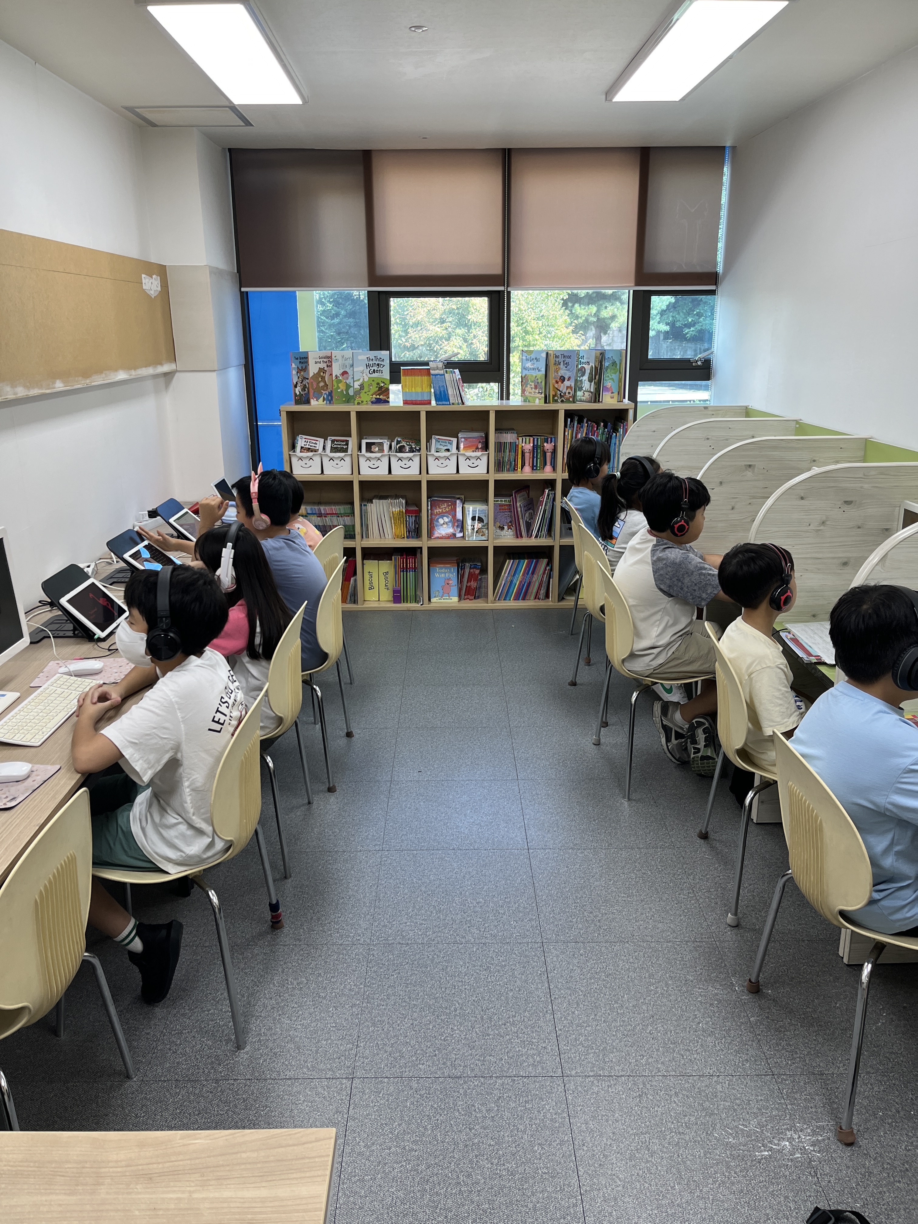 키위영어교습소에는 자유롭게 쓸 수 있는 컴퓨터 4대가비치 되어 있어서필요할 때 바로 사용가능합니다. 파닉스 음성 / 기초 단어 교육 20분 브릭스 리딩 & 리스닝 30분(혹은 리딩센스, 영자신문)문법교육...