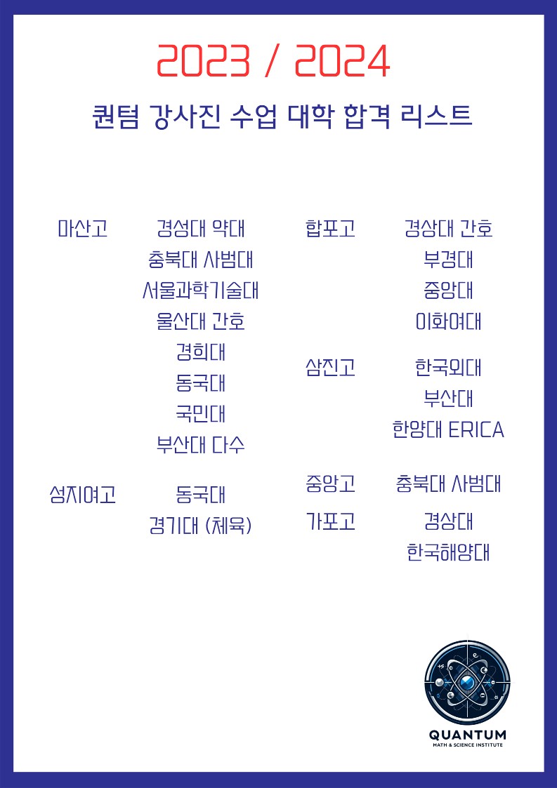 안녕하세요^^ 학원 소식통 "이짜나" 입니다. 벌써 ~ 추웠던 겨울학기가 지나가고 따스한 봄바람이 불기... 오*율 님 / 수강 후기 고1_심화문풀 화학1 _이찬화 선생님 (수강 후기) 이 강의를 듣기 전에도 화학을 여러...