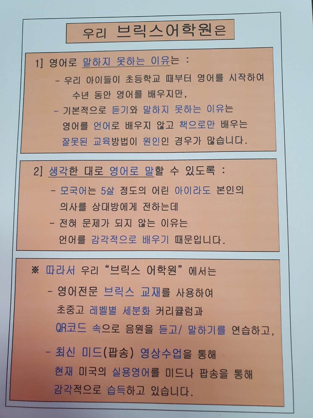 명문 브릭스학원 스피킹수준!!!