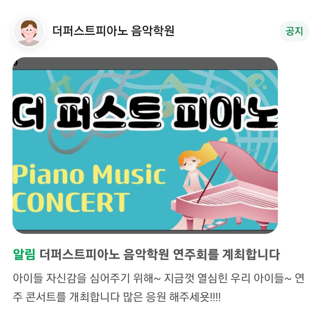 바라며 행복이 가득한 시간이 되시길 기원합니다! 감사합니다. 호계동, 쏭피아노 음악학원 드림 쏭피아노 [체험수업] 평촌 어바인퍼스트 아파트 근처에 위치해있는 저희 쏭피아노 음악학원은 피아노 전공자