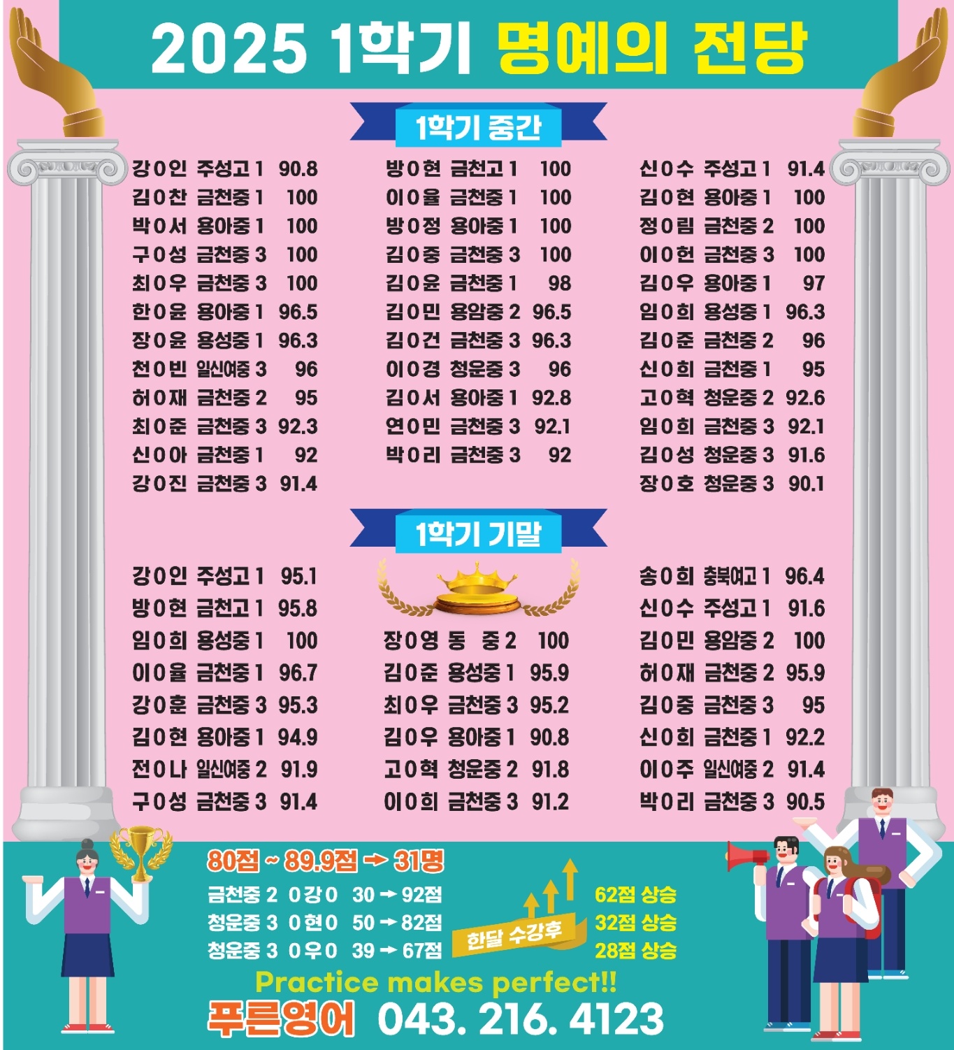 푸른중 영어 만점자 솔빛중 국어 100점 푸른마을 영어학원 국어학원 수학 만점과 영어 만점 그리고 국어 100점 학생들의 결과의 진짜 의미는 학생의 실력을 끝까지 책임지는 시스템이 있었기에 가능했습니다....