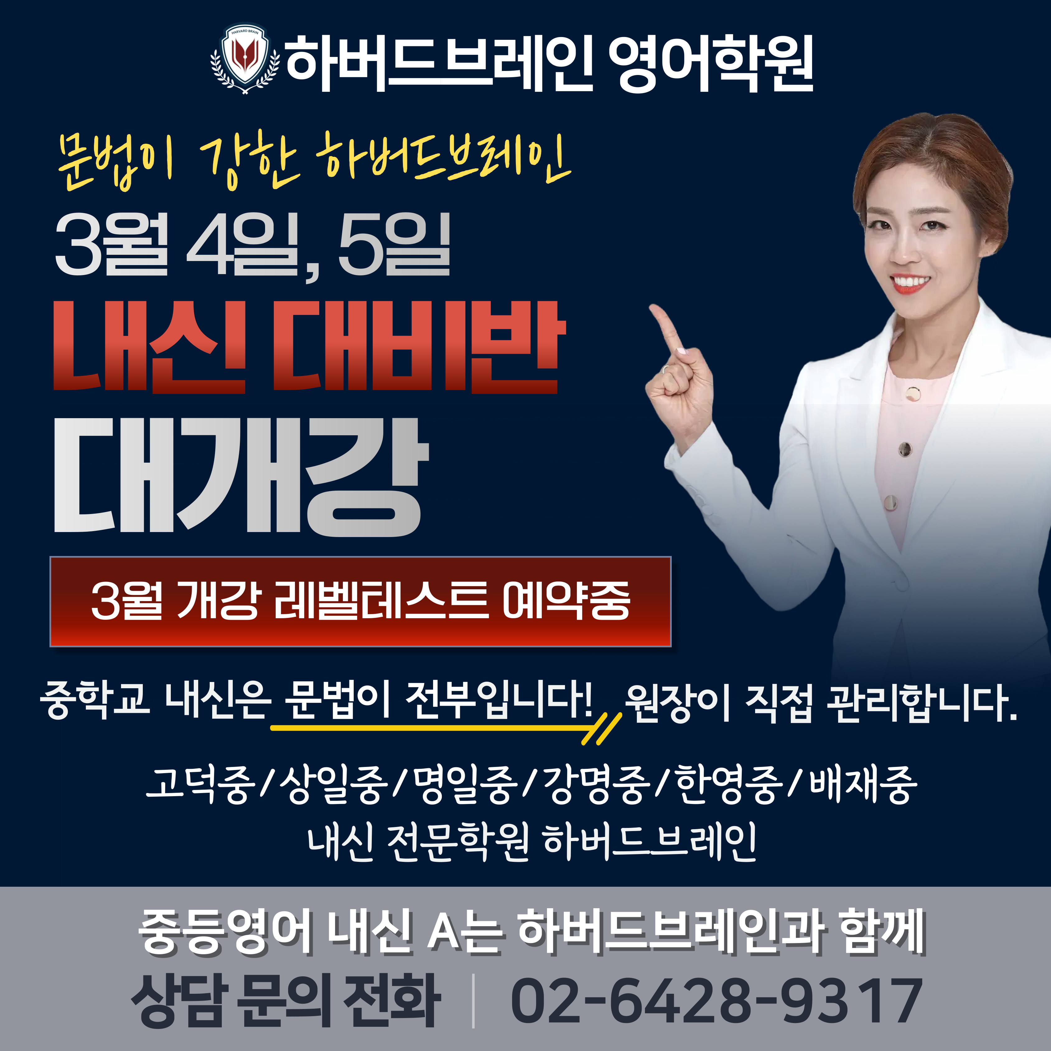 이름 : 하버드브레인 영어학원 도로명 주소 : 동남로82길 117 2층 하버드브레인 영어학원 ● 영업시간... 내신기간에 중등부는 당연히 시험대비 수업을 하고 그 외엔 수능영어 대비를 합니다. 하버드브레인의...