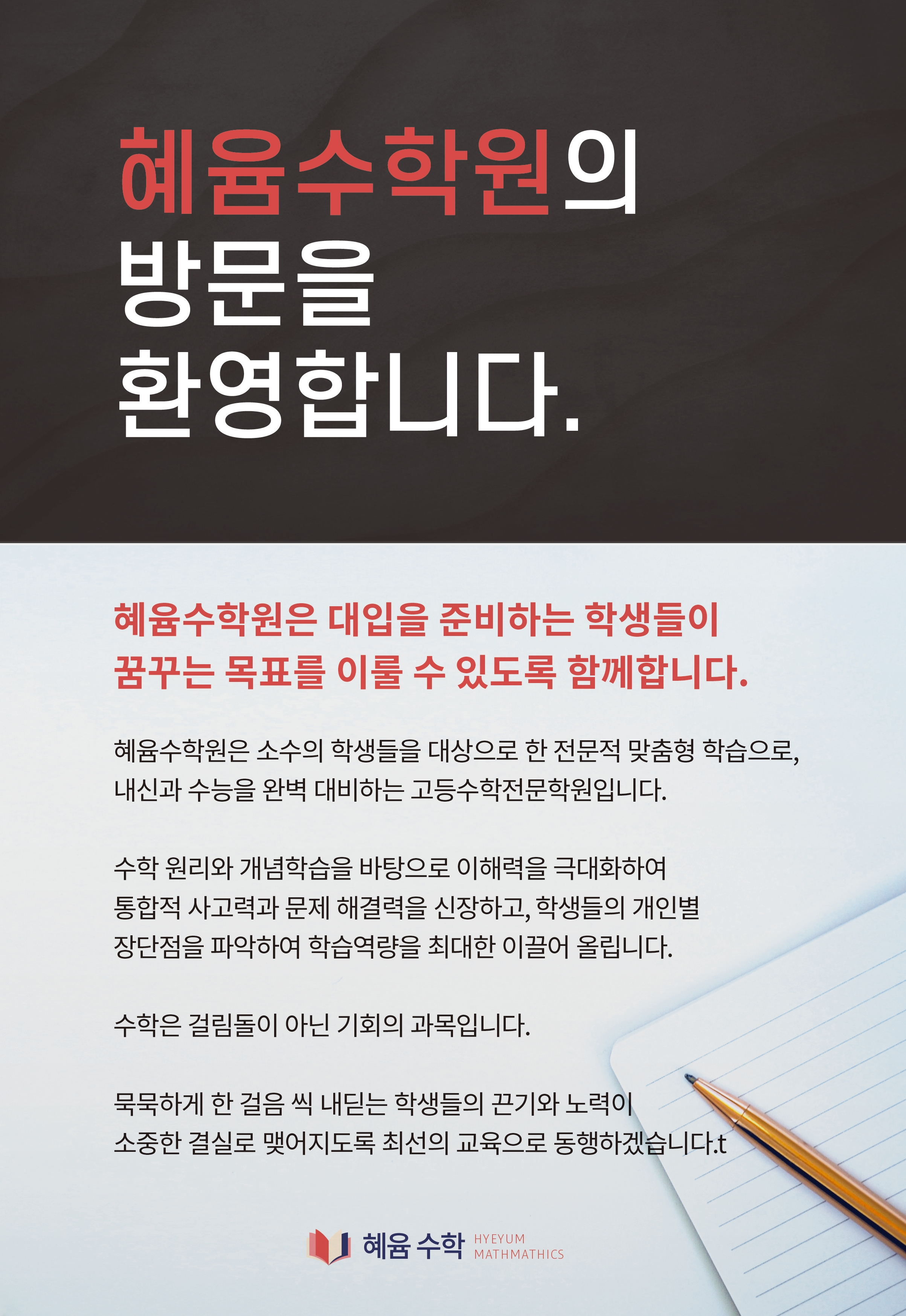 교실은 준비된 교사로부터' 창원 서상동 영어 수학 전문 혜윰학원