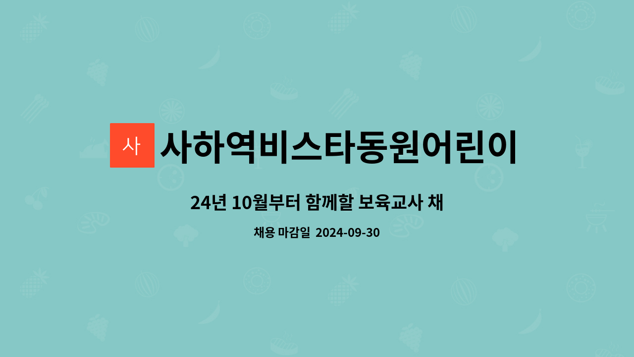 부산시 사하구 사하역 비스타동원 국공립어린이집 위탁운영체 모집공고 국공립어린이집 위탁운영체... 부산시사하구국공립어린이집 #부산시사하구국공립사하역비스타동원어린이집위탁운영체모집공고...