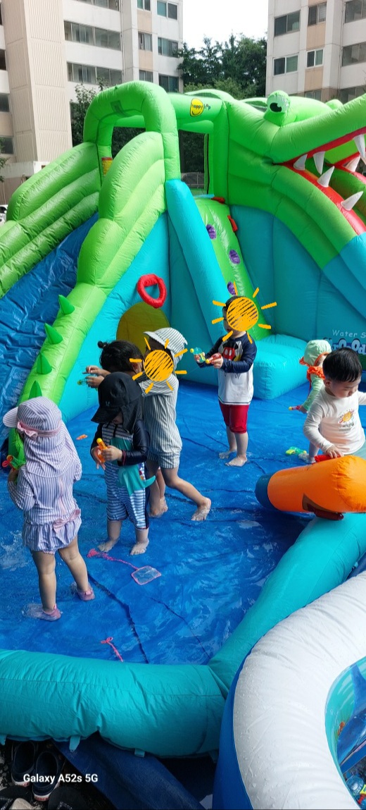 맘 어린의집은 유아 전담, 맘앤키즈어린이집은 영아 전담으로 구분하여 운영하여서 그런지 일대일로 선생님들의 지도가 대단했습니다. 아이들은 에어바운스, 미니경운기, 트래플린 타기, 그네타기 등...