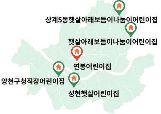 꿈보어린이집, 샬롬어린이집, 좋은생각어린이집, 행복색채어린이집, 신정2동어린이집... 스마일토리어린이집, 오리뜰어린이집, 위례어린이집, 옥길자이어린이집, 꼬마숲어린이집, 시립목감호수품애어린이집...